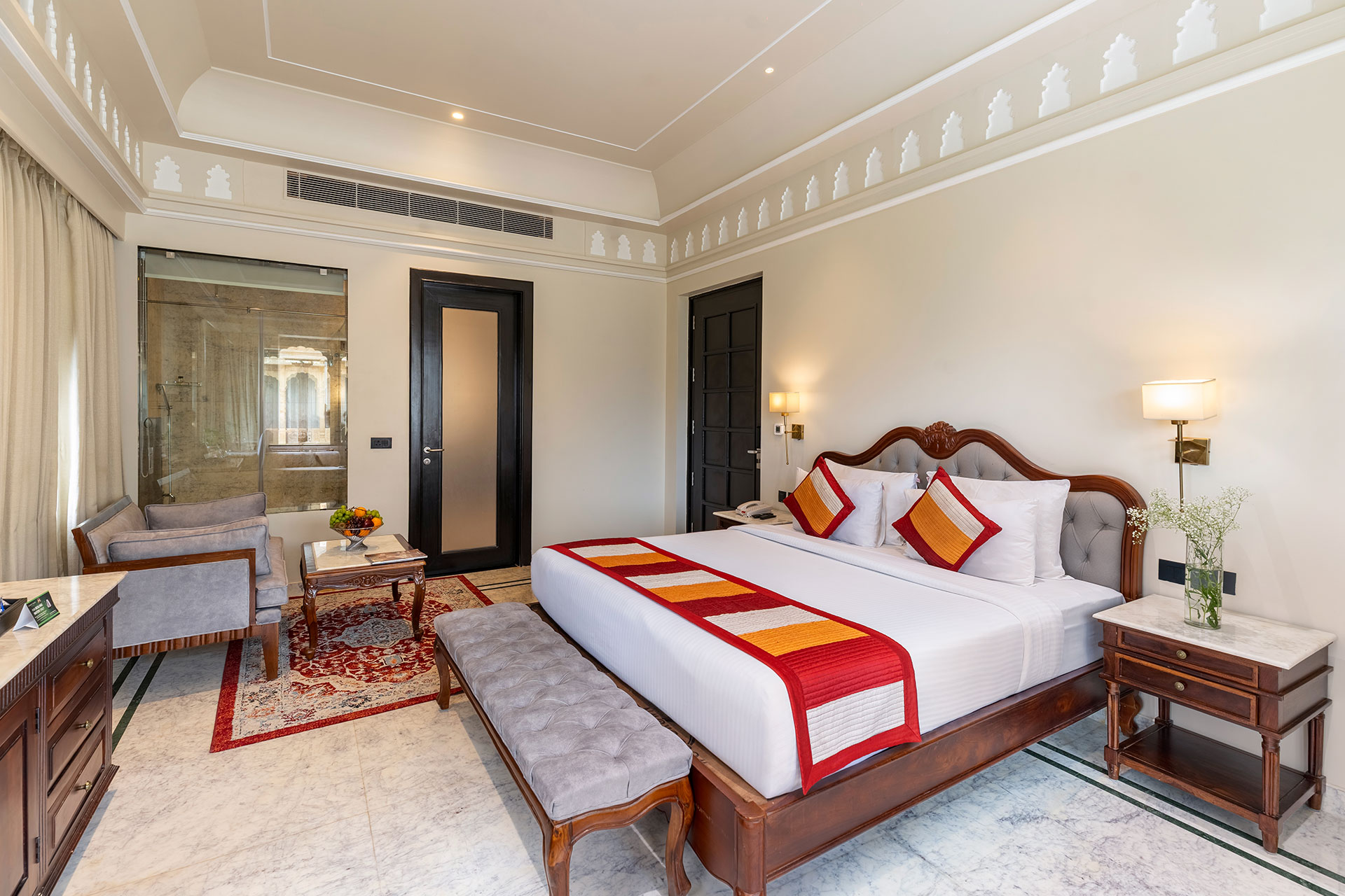With our Palace Room with Bay Window, which offers the ideal fusion of classic elegance and contemporary comfort, you may experience the allure of Rajasthan. This accommodation, which is situated on Budha Pushkar Road in the serene neighborhood of Nedaliya, is intended for visitors who value both elegance and leisure.