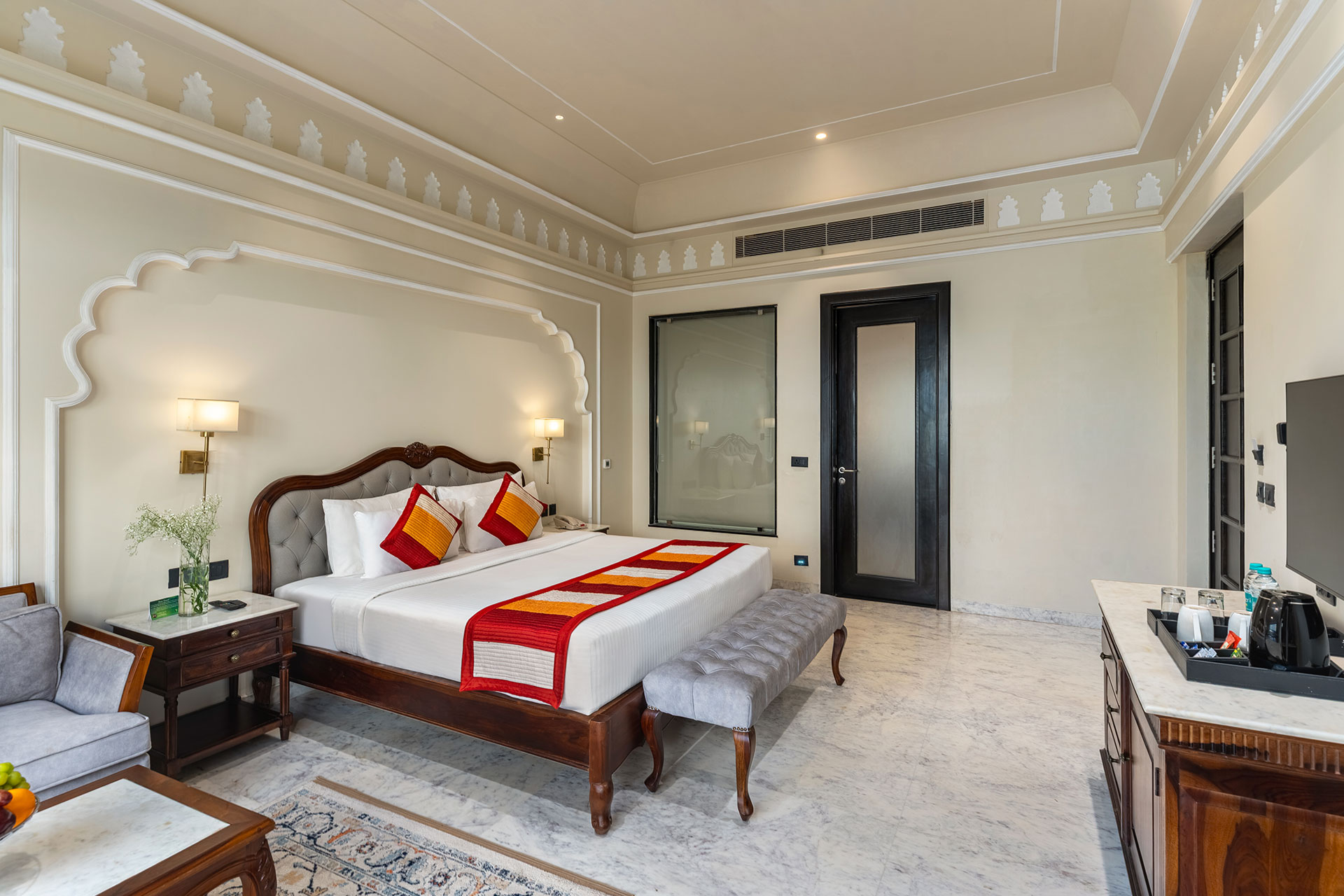 Experience a perfect blend of traditional Rajasthani charm and modern comfort in our Superior Room With Balcony. Nestled in the serene surroundings of Nedaliya on Budha Pushkar Road, this room offers a tranquil retreat with stunning views of the rustic landscape.
